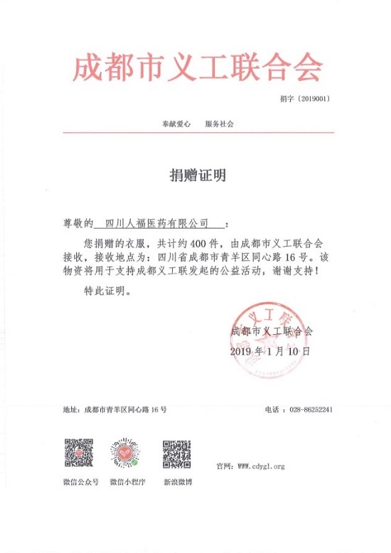 1月10號(hào)下午2:00,成都義工聯(lián)合會(huì)的工作人員來到公司,對物資進(jìn)行搬運(yùn),負(fù)責(zé)后續(xù)物資的送達(dá)工作,負(fù)責(zé)人彭大哥表示,人福公司的員工們真的很有愛心,他僅代表聯(lián)合會(huì)和色達(dá)人民表示衷心的感謝!